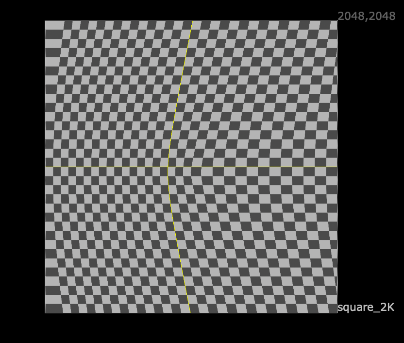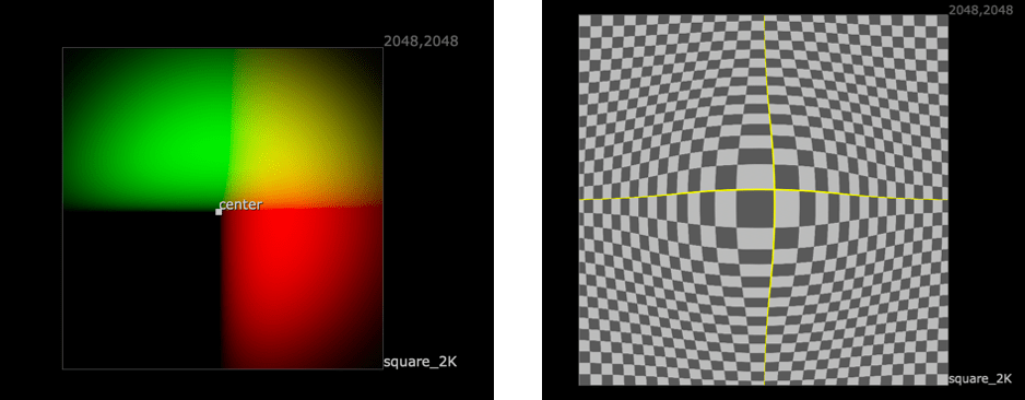 Next, when we take a look about this red radial ramp, it only give us one variable which is not enough to define every direction. Even though it already push the check board as a radial distort, push the whole image to the left which we want to avoid.