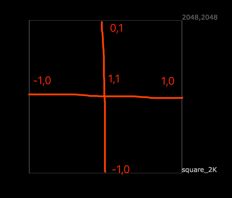 If we treating this square_2k image as a 2D coordinate axis, and introduce the green value then the problem will be solved. The origin can be (1,1) or (0,0) which will affect your distort value go positive or negative.(1,1) is easy to build through the expression.