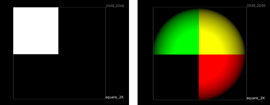 I used the same technique to build the green radial ramp, and also use expression ramp to divide the whole image into four portion. Then I used this ramp to negative value to multiply the radial uv map in order to get negative value for each portion.